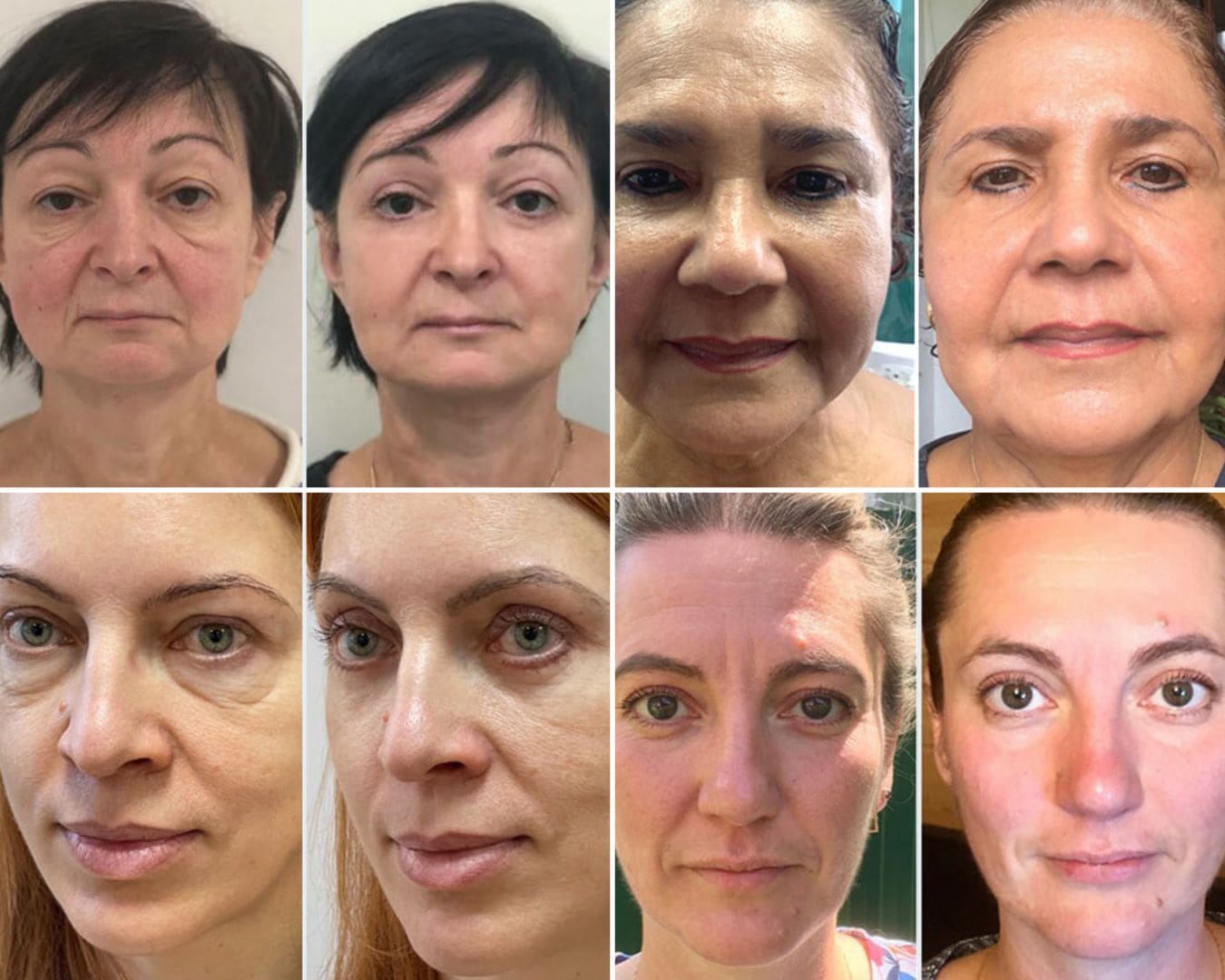 Pendant les essais cliniques du complexe multi, nous avons organisé un groupe de discussion composé de quarante femmes âgées de 25 à 60 ans. Nous avions un objectif, celui d'observer les changements microscopiques de la peau après l'utilisation de Simpla 360. Voici l'aspect de nos participantes après un mois.